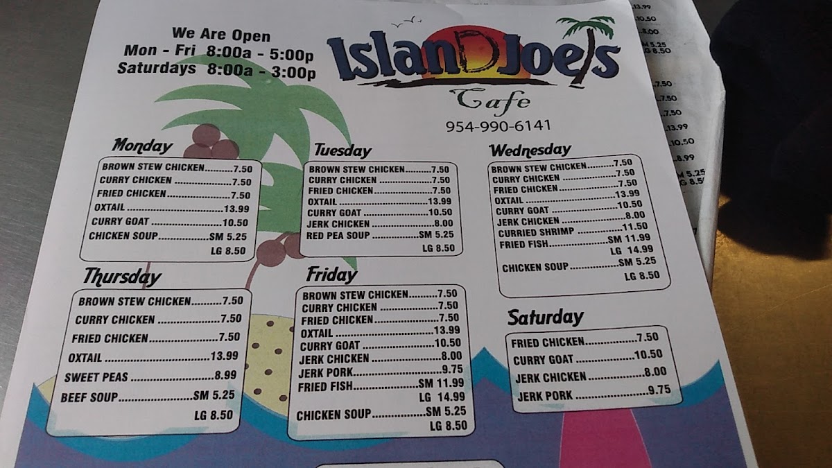 Welcome to Island Joe's Cafe, a hidden gem nestled in Fort Lauderdale, where authentic Jamaican flavors come alive. This vibrant eatery offers a mouthwatering menu that features beloved Jamaican classics. Dive into their Thursday offerings like Brown Stew Chicken, Curry Chicken, and Oxtail, each dish crafted with care and bursting with flavor. Saturdays bring a feast of Fried Chicken, Curry Goat, Jerk Chicken, and Jerk Pork, perfect for those craving a spicy kick.
